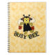 Uma abelha bonito do mel que leva dois baldes, com o texto extravagante "abelha ocupada" decorou com abelhas pequenas e as flores coloridas.