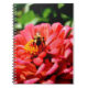 Belo Dia de Verão! Bonito zinnia de coral laranja com um pequeno abelhinho. Foto de H Cooper. O texto é personalizável!