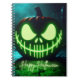 Caderno Espiral Abóbora de Halloween assustadora com brilho verde