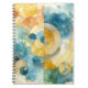 Caderno Espiral Abstrato de Aquarela Geométrica Azul e Amarelo