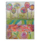 A maioria das flores múltiplas coloridas, juntamente com impressões e espirais, são iluminadas neste cobrir de notebook e são combinadas para fazer deste um abstrato muito bonito, pintado à mão e criado como mídia mista.
