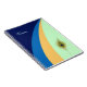 Caligrafia editável, ondas de abstrato em azul, ouro e verde-claro com um notebook de penas de pavão.