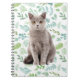 Caderno Espiral Adorável Gato de Cinza com Flores e Folhas