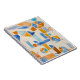 Aquarela com formas geométricas nas cores base, laranja e azul, pintadas de maneira intuitiva e coordenada pra deixar espaços harmônicos entre os formatos, tornando a obra única e agradável aos olhos