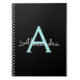 Caderno Espiral Aqua Teal Blue Script Girly Monographic Name