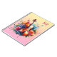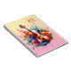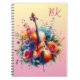 Watercolor ai art retratando um violoncelo rodeado por bonito flores vermelhas, azuis e laranja e arte foliar. Notebook personalizado.