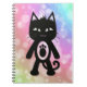 Caderno Espiral Arco-íris de Kawaii e gato preto