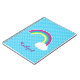 Um arco-íris brilhante com uma nuvem em uma extremidade, está em um fundo azul da cerceta com bolinhas claras. Personalize-o com seu nome.