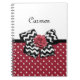 Pegue uma garota com este notebook giro, vermelho e branco, com um arco chevron preto e branco, e um rosa vermelho-chic. Personalize este retrato vermelho e preto encontra a design moderna, acrescentando o nome da sua adolescente. Imagem impressa plana, NÃO fita e arco de rosetas reais.