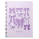 Notebook romântico e coquete com ilustração desenhada à mão de arcos roxos.