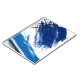 Notebook de arte contemporânea de abstrato de ondas azuis com, com uma pintura abstrato que criei, usando uma paleta de cores frias feita de vários tons de azul, bem como preto e branco.