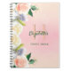 Uma faculdade governou um diário para suas ideias de artesanato. Decorados com flores de verão grandes, lixadas, de cor aquosa, rosas florais e pedras em branco, coral e ouro rosa. Romântico, cor-de-rosa-rosa, rosa de gradiente de ouro. Adicione seu nome, letra monográfica e um título de livro. Letras verdes e cor de pêssego.