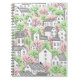 Caderno Espiral Árvores e casas com padrão uniforme. Primavera e s