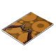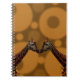 Imagem sobre um fundo circular marrom são duas Girafas idênticas