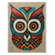 Esta é uma coruja decorativa feita à mão e estilizada com padrões astecas em cores preta, vermelha, turquesa e laranja.