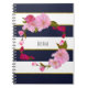 Notebook azul branco e moderno e Dourado de gema floral. Personalize a frente com ou sem texto.