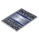 Design metálico branco e azul claro com aspecto de alumínio escovado e amortecedores florais metálicos de safena. Monograma personalizado e opcional. O design está disponível em outros produtos e pode ser solicitado em qualquer produto que oferecermos no Zazzle. Isto não é um metal, mas uma imagem que parece metálica.