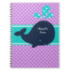 É fácil personalizar este notebook colorido de bolinhas e baleias azuis marinho com um nome antes de fazer o pedido! Possui um fundo polka púrpura pontilhado com uma baleia azul marinho com água azul-aqua e uma área que você pode personalizar facilmente com um nome!