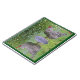 Este caderno apresenta uma galinha de rocha barrada sobre flores e reflexões de um meio-jardim de cogumelos de madeira.