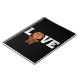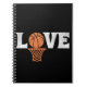 Design de texto "Love" com basquete laranja e decoração de rede de basquete