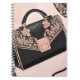 Black and pink is a beautiful AI art that shows pink flowers on a purse design on a light pink background. It is the perfect notebook to be in style this year.