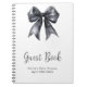 Pretty baby shower guest book featuring a black coquette bow ribbon. The words can be changed to suit your own details or requirements