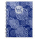 Caderno chique e elegante com um design de padrão em camadas em tons de azuis melancólicos monocromáticos com um monograma personalizado. Ótimo para negócios, escola ou planejamento pessoal ao longo do ano. Caderno Boho Moody Blues Mandalas Monogramado.