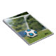 A bola de futebol azul e branca no capim está esperando para ser chutada para marcar. A fotografia de alta resolução cria uma interessante declaração de futebol para o amante do futebol. Personalize adicionando ou alterando o nome. A fonte pode ser alterada por tamanho, estilo, cor ou local.