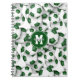 Este caderno espiral temático de futebol apresenta um padrão de bolas de futebol verdes e brancas dispostas aleatoriamente em tamanhos variados, viradas para todas as direções em um fundo branco - o nome do jogador e monograma ou número da camisa são personalizáveis - por katz_d_zynes