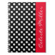 Caderno Espiral Bolinhas brancas e pretas com destaque vermelho