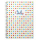 Padrão de bolinhas multicolorido no caderno espiral personalizado. Personalizado com nome inicial e nome próprio.