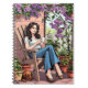Caderno Espiral Bonito Lady Bebendo Relaxando Lá Fora