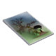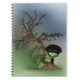 Este é um dos meus desenhos animados. Aqui está uma pequena cara verde com grandes olhos tristes e cabelo preto liso, parado sob uma árvore bonsai. Fundo em tons de azul e verde. Arte digital original de Taylor Addams.