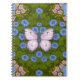Caderno Espiral Borboletas e flores simetria, azul e rosa