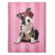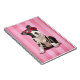 O filhote de cachorro na moda do terrier de Boston com coração deu forma aos óculos de sol, pintados pelo artista Maryline Cazenave.