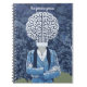 Este caderno azul-dominante contém uma ilustração de uma pessoa com uma cabeça feita inteiramente de um cérebro. Esta é uma bela design para presente ao gênio da casa ou escola! Você pode personalizar o texto padrão "o verdadeiro gênio".