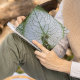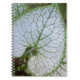 Um notebook de tamanho pessoal, encadernado em espiral, que apresenta a foto do cobrir de uma folha verde e branca, variegada, em forma de coração, da planta Brunnera macrophylla. Um design floral adorável! Use como diário ou para fazer anotações.