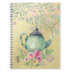 Caderno Espiral Bule elegante e flores da aguarela Dourados