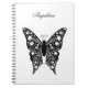 Borboleta escura e branca, artística, elegante com notebook padrão floral com nome personalizado.