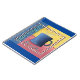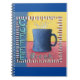 Incêndio em nossa série de café. Esta design apresenta um charmoso conjunto de caneca azul contra um fundo vivo de vermelho, amarelo e azul, criando uma sinfonia visual para os fãs de café. Qzik Art