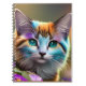 Caderno Espiral Calico, flores, gata e flores azuis e ferrugem