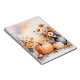 Uma bela cena do outono, com abóboras vibrantes, cercadas por uma coleção de arranjos de flores brancas em vasos. O fundo é suavemente embaçado com matizes pastéis, criando sereno e convidando atmosfera, perfeita para celebrar o outono. Desenhado pelo artista Danguole Serstinskaja