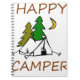 Design engraçado do campista feliz com uma barraca no ar livre.