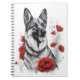 Com um alerta e uma expressão inteligente, o cão German shepherd neste bloco de notas exumenta uma sensação de lealdade e força inabaláveis enquanto se senta serenamente entre os papoilas vermelhos.