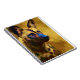 Uma pintura digital que funde o hiperrealismo com uma abstração ousada e contemporânea. Este retrato cativante de um Cachorro Selvagem Africano apresenta um confronto harmonioso de matizes vibrantes azuis profundos, ouros e verdes elétricos que inspiram vida em cada fio de pele e sombra. As pinceladas texturizadas, quase cúbicas, adicionam profundidade e movimento, transformando um simples perfil canino em uma afirmação de beleza bruta e intensidade emocional.