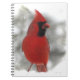 Este caderno caracteriza um cardeal vermelho brilhante. É verdadeiramente o rei de pássaros do quintal! Está empoleirado aqui em um trilho nevado que come sementes de girassol pretas do óleo quando a neve do inverno rodar em torno dele.