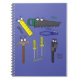 Notebook personalizável com banda desenhada Whimsical de ferramentas carpinteiras com martelo, serra, chave de fenda, chave inglesa, alicate e régua, com olhos! Criado digitalmente pelo KLeighE do Whimsical Cartoon Art ™ da Hinterland Harmony