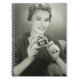 Mulher de sorriso que guardara cartões de jogo no estúdio, (B&W), marcas do retrato | George | AssetID: 57520357