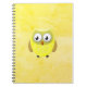 Notebooks personalizados. Desenho de uma coruja bebê. Personagem de desenho animado bonito. Ideia de presente para crianças.