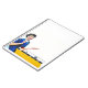 Imagem engraçada de uma dona de casa mostrando orgulhosamente sua lavadora e secadora. Cor retrorreflectora brilhante.